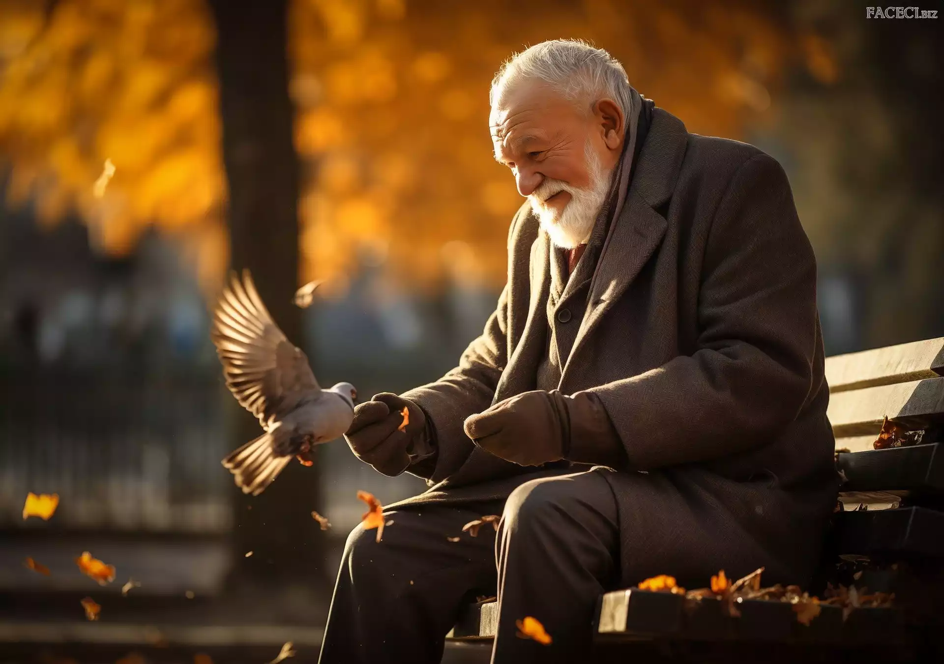 Mężczyzna, Jesień, Gołębie, Park - faceci.biz